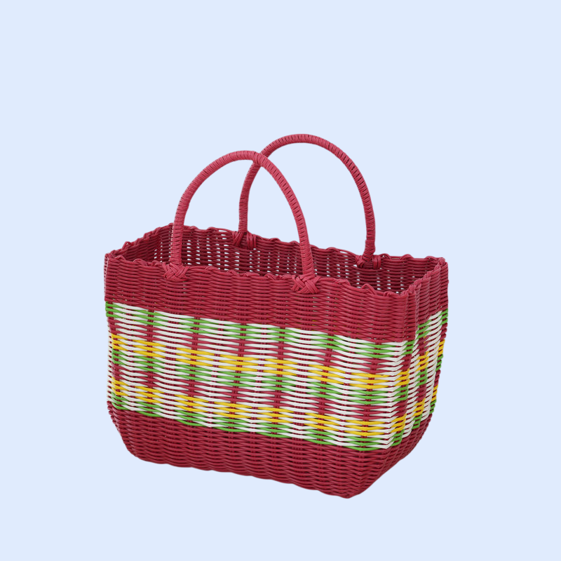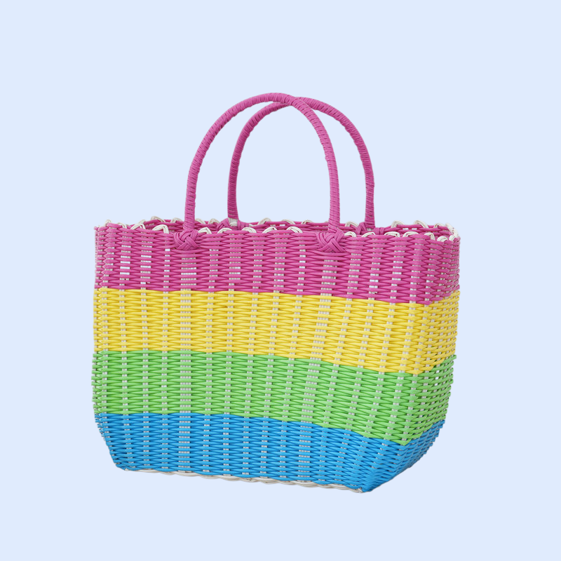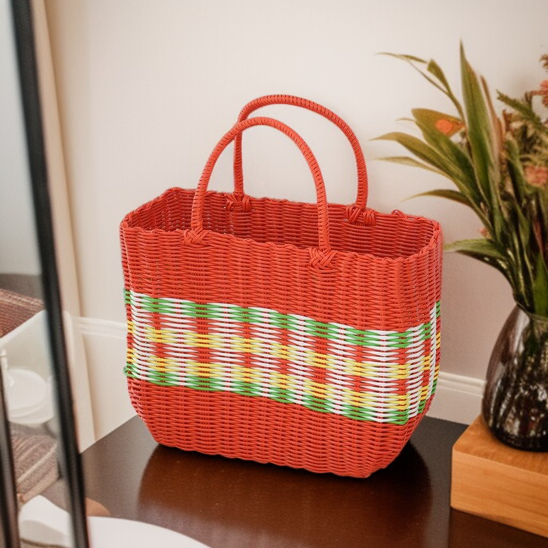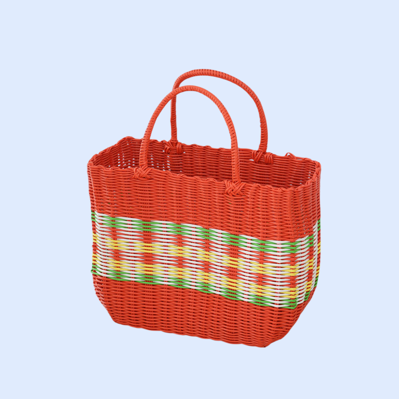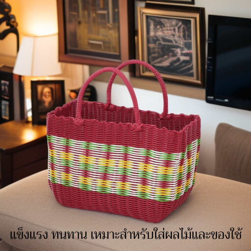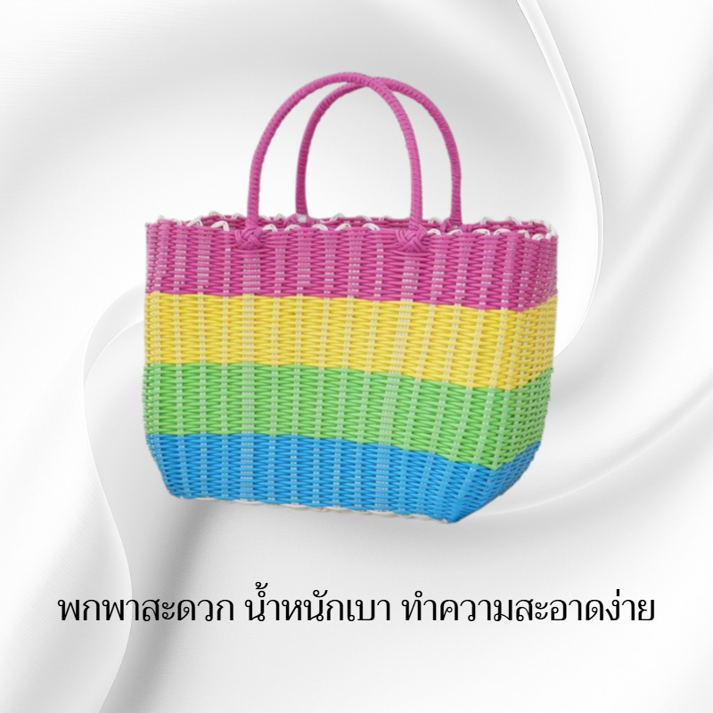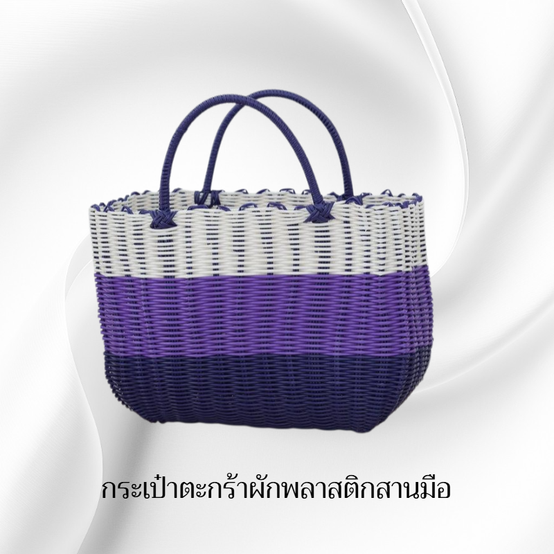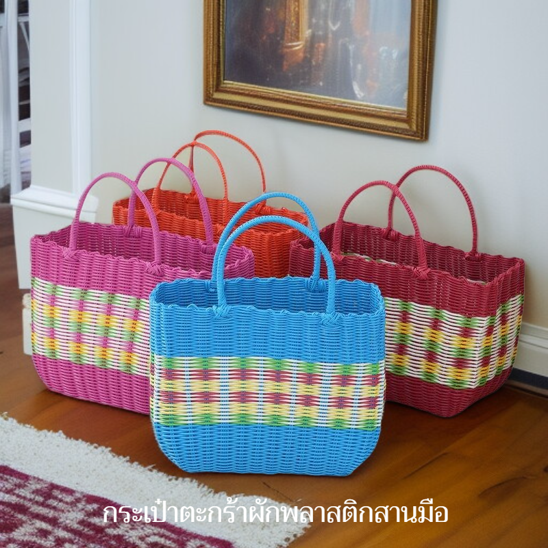 กระเป๋าตะกร้าผักพลาสติกสานมือสำหรับใส่ผลไม้และของใช้