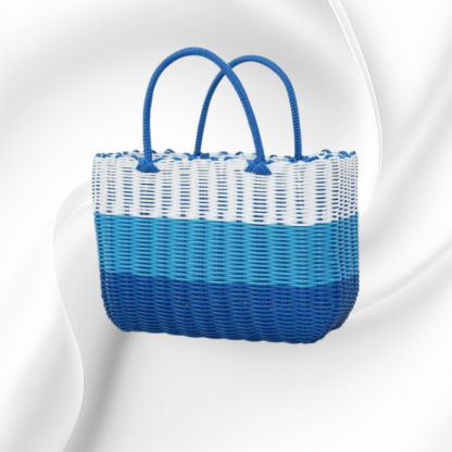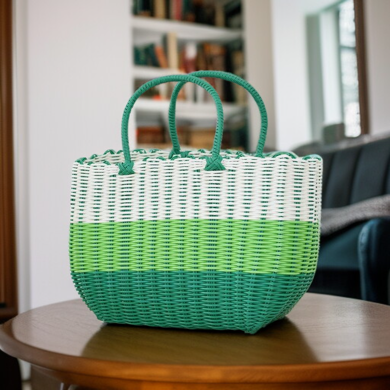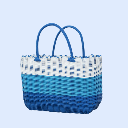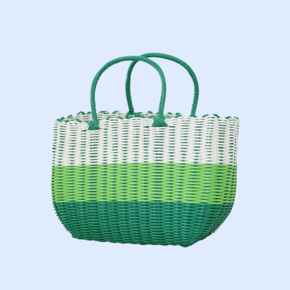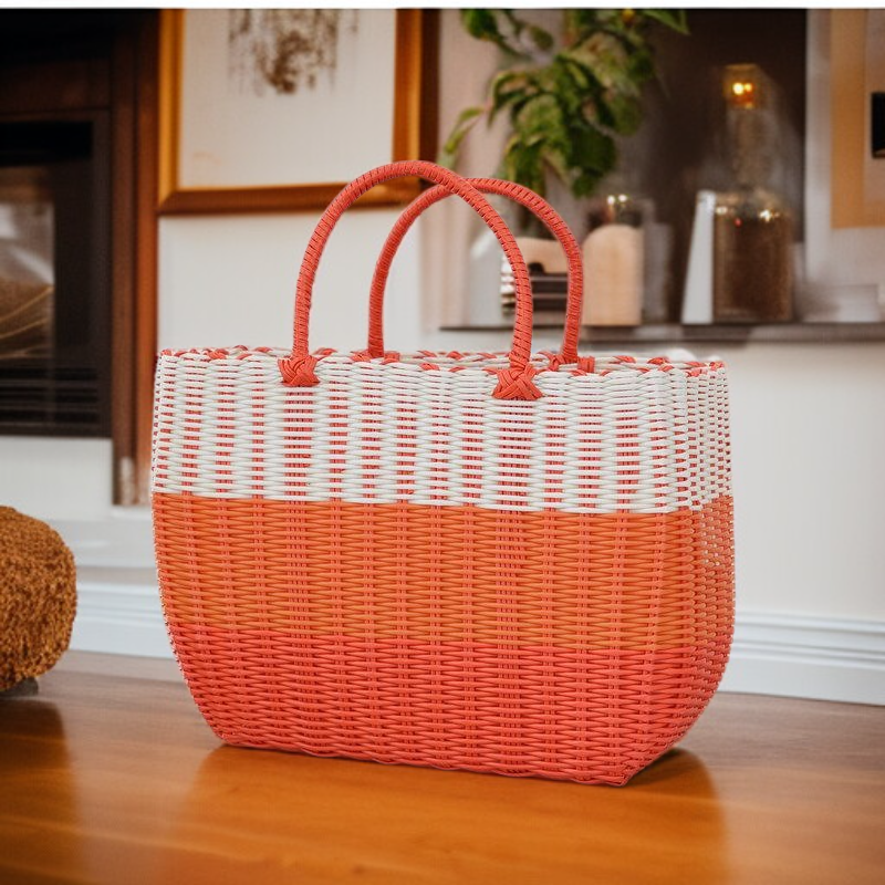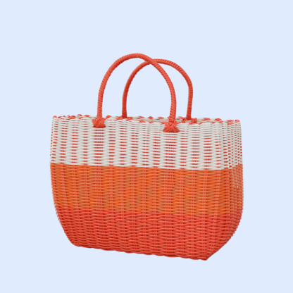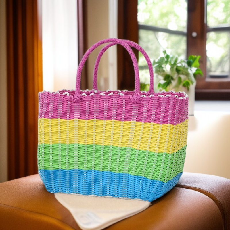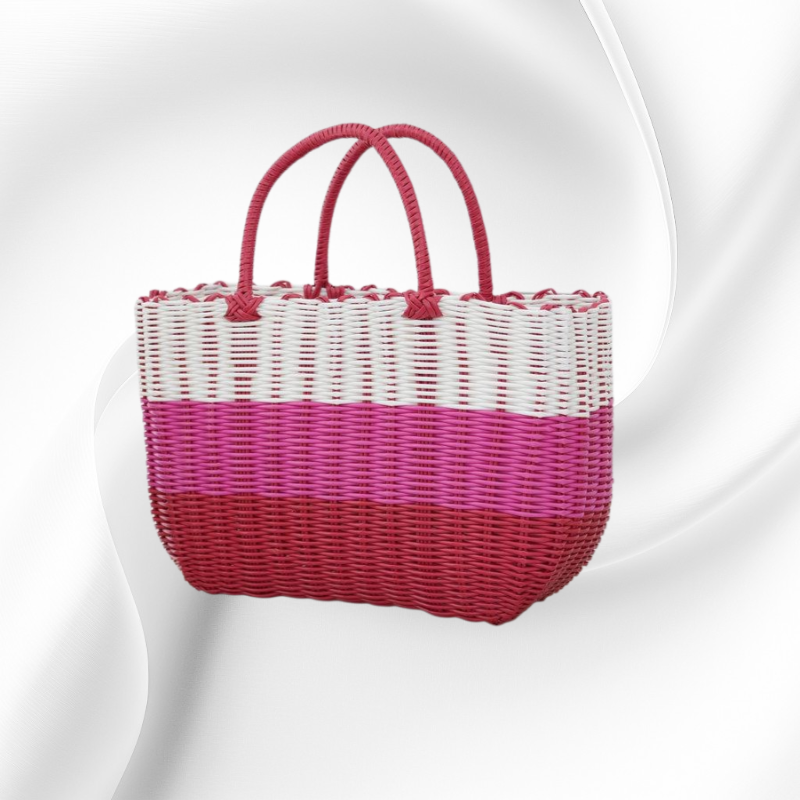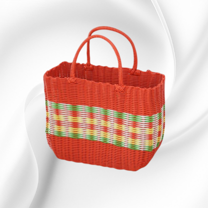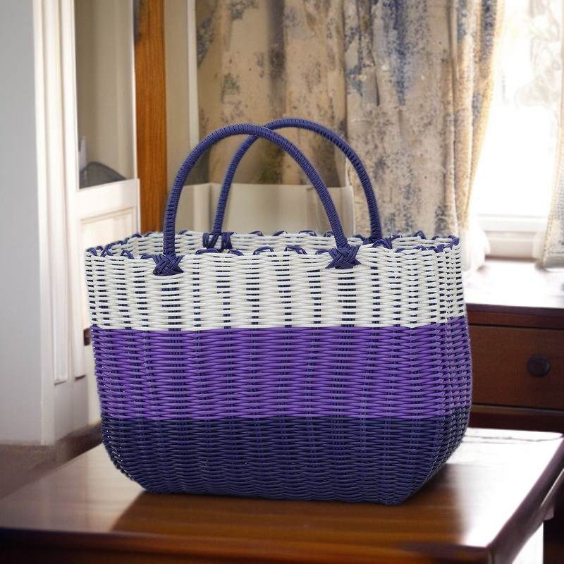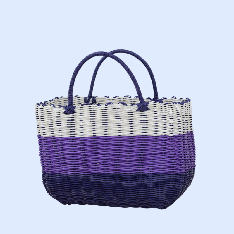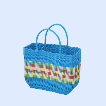 กระเป๋าตะกร้าผักพลาสติกสานมือสำหรับใส่ผลไม้และของใช้